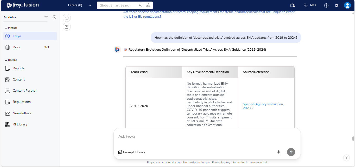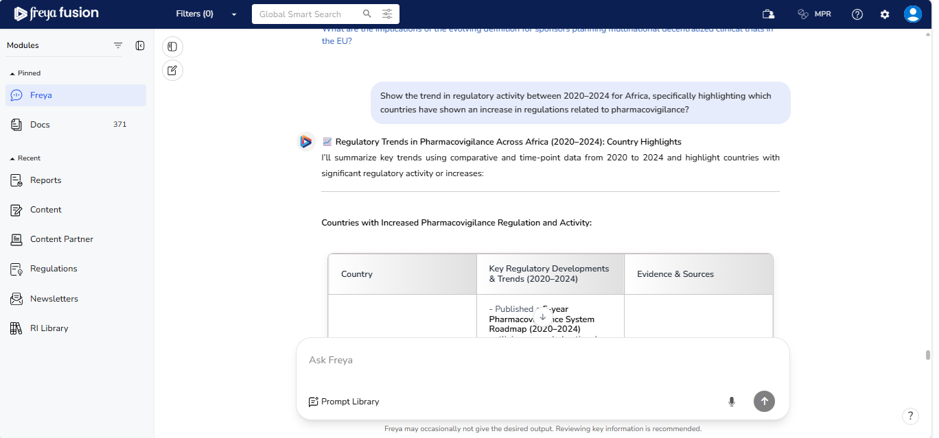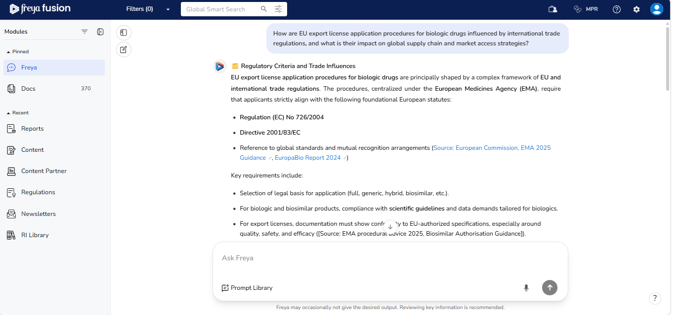 Freya 2.x is built on a Large Language Model (LLM), which means the quality and relevance of its responses are directly influenced by how your question is framed. To ensure you receive the most accurate, structured, and actionable regulatory insights, it's important to follow a few key best practices when submitting your queries.