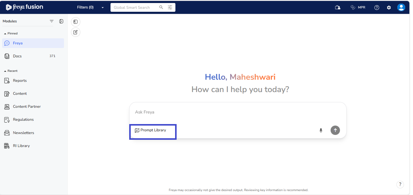 Prompt Library into the chat, and Freya will provide accurate answers. All