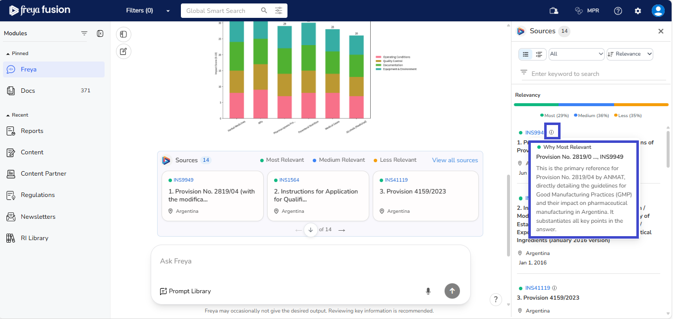 These features give you complete transparency and control over the documents Freya uses, allowing you to explore the exact regulatory references behind every insight.